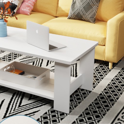 Stolik wykonany jest z wysokiej jakości materiałów, co gwarantuje jego trwałość i stabilność. Biała powierzchnia stolika jest gładka i łatwa do utrzymania w czystości. Prostokątny kształt i niskoprofilowa konstrukcja nadają mu nowoczesny wygląd, który dodaje lekkości każdemu pomieszczeniu.
