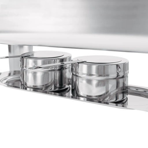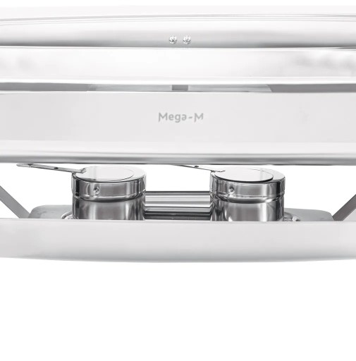 Podgrzewacz stołowy Mega-M z uchylną pokrywą jest idealny do utrzymywania odpowiedniej temperatury i serwowania gotowych dań. Doskonale sprawdza się podczas samoobsługi gości na różnego rodzaju imprezach okolicznościowych, bankietach oraz szkoleniach biznesowych. Wykonany z wysokiej jakości stali nierdzewnej, łatwy w utrzymaniu czystości. Podgrzewacz gastronomiczny wyposażony jest w wygodny system podgrzewania za pomocą paliwa, który utrzymuje stałą temperaturę przez długi czas.
