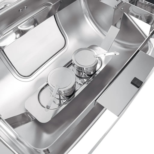 - Wygodne uchwyty ze stali nierdzewnej ułatwiają otwieranie podgrzewacza.