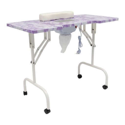 Składany prostokątny stolik do manicure Stolik kosmetyczny Fioletowy przenośny stolik do paznokci Mobilne stanowisko do makijażu z odkurzaczem do paznokci i kratką zabezpieczającą oraz 3 workami na kurz i torbą do przenoszenia oraz podłokietnikiem 95*48*72.5cm