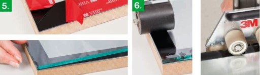 ✅ KROK 2: Nałóż taśmę 3M VHB na przygotowaną powierzchnie. Uważaj, aby nie powstały pęcherze powietrza. Nie dotykaj taśmy. Taśma nie powinna być nadmiernie napięta. Dociśnij taśmę, przykładając siłę przynajmniej 1 kg/cm2. Jest to niezbędne do uzyskania właściwej przyczepności i mocnego połączenia. Wytrzymałość połączenia wzrośnie z czasem. Mocny docisk zwiększa powierzchnię kontaktu kleju z podłożem dzięki wpłynięciu klej w nierówności powierzchni.