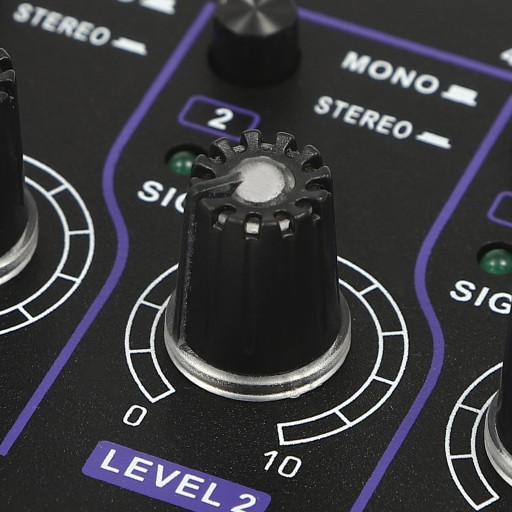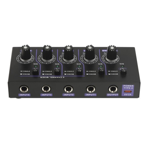 Ten 4-kanałowy mikser audio będzie twoim wielkim pomocnikiem w mieszaniu dźwięku i edycji muzyki. Dzięki indywidualnym podświetlanym pokrętłom głośności RGB i przyciskam mono/stereo na każdym kanałie, bardzo łatwo jest wymieszać idealny efekt dźwiękowy. Jego kompaktowe ciało i lekkie sprawiają, że łatwo można go przenieść do różnego rodzaju miejsc koncertowych, aby pokazać swój talent muzyczny.