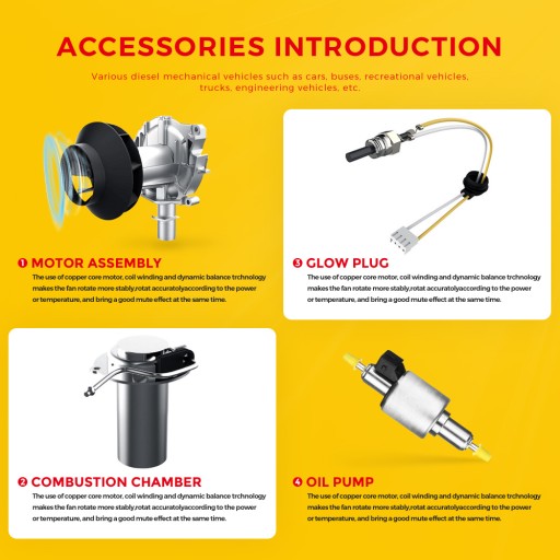Szerokie zastosowania: Szerokie zastosowania: dodatkowa nagrzewnica na olej napędowy nadaje się do samochodów osobowych, przyczep kempingowych, ciężarówek, jachtów, przyczep kempingowych, domów, garaży, sklepów, namiotów i innych. Grzejniki są małe, lekkie, łatwe w użyciu i szybko się nagrzewają. To najlepszy wybór do ogrzania samochodu i domu