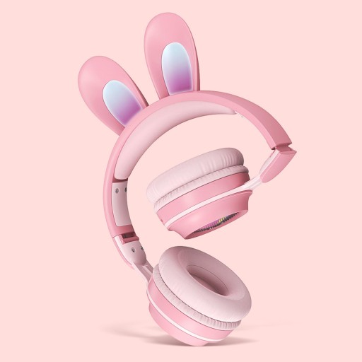 Bezprzewodowe Słuchawki RGB Light Stereo Składane Dla Dzieci Dorośli Różowe