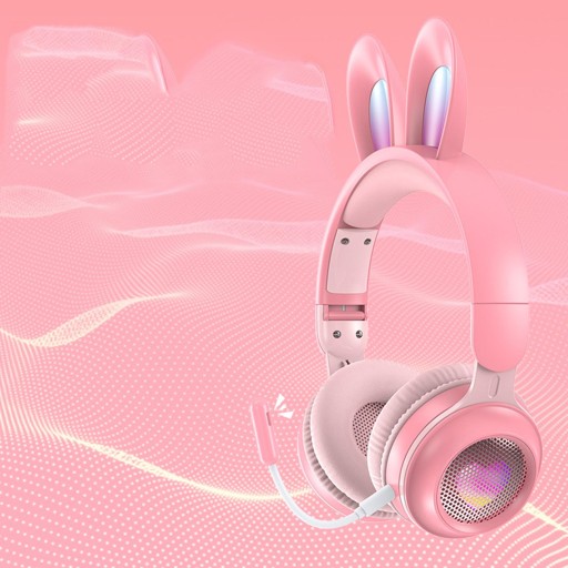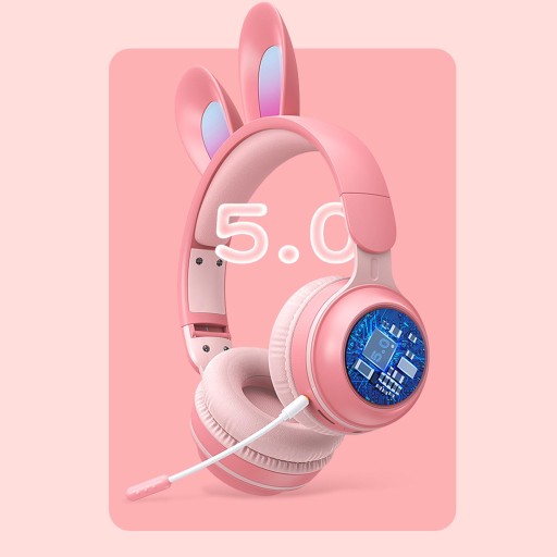 Складные беспроводные наушники с подсветкой RGB, розовые