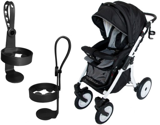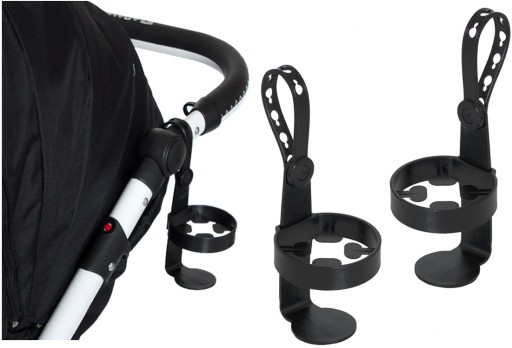 Plastikowy uchwyt z możliwością zamontowania do wszystkich typów wózków głębokich, spacerowych, rowerków tradycyjnych, biegowych, trójkołowych, na rączce, barierce lub rurce, oraz wielu innych. Mocowane są za pomocą regulowanego paska zaciskowego z blokadą.