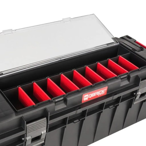 Przegrody jak przystało na profesjonalny organizer narzędziowy są wyjmowane, dzięki czemu można dopasować rozmiar organizera do swoich potrzeb. Qbrick PRO idealnie sprawdza się jako organizer na śruby i nakrętki.