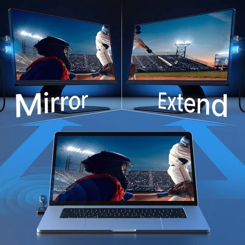 Wybierz tryb lustrzany lub rozszerzony w zależności od potrzeb, czy to duplikujesz ekran, czy rozszerzasz pulpit dla zwiększonej produktywności.