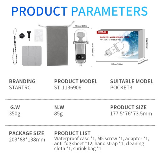Водонепроницаемый подводный корпус длиной 60 м для DJI OSMO POCKET 3