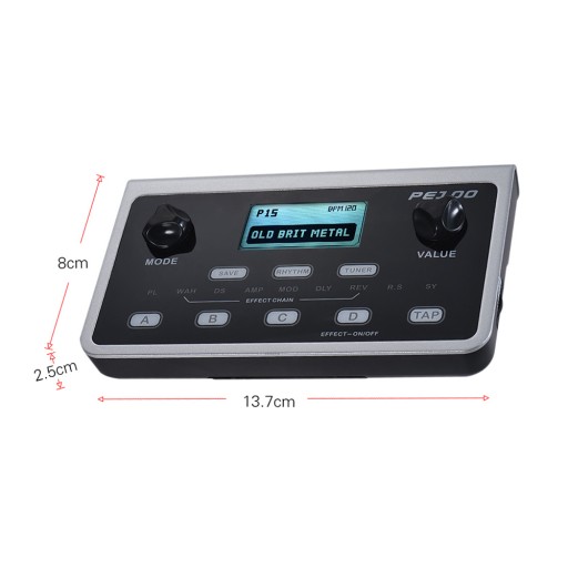 PE100 to kieszonkowa jednostka na biurko, która zawiera wszystko, czego potrzebuje gitarzysta, szczelnie opakowane w małą, elegancką obudowę. Pełna gama modeli wzmacniaczy, niezliczona ilość efektów i stompboxów, precyzyjny tuner, wzory perkusyjne i metronomy. Podwójne gniazda wyjściowe sprawiają, że idealnie nadaje się do podłączenia do wzmacniacza, sprzętu Hi-Fi, słuchawek lub bezpośrednio do miksera lub komputera w celu bezpośredniego nagrywania. Niezwykle łatwy w programowaniu, wystarczająco mały, aby wsunąć się do kieszeni i zasilany małym zasilaczem prądu stałego lub baterią. PE100 jest idealny dla gitarzysty w podróży.