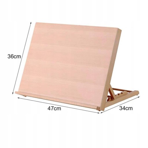 4 regulowane kąty w zakresie od 30 stopni do około 90 stopni. Łatwa do zablokowania drewniana sztaluga z regulowanymi pozycjami, aby dopasować się do różnych kątów i wysokości każdego.