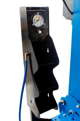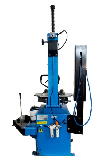 Przedstawiony model montażownicy charakteryzuje pneumatycznie sterowane oraz blokowane uchylne ramię główne, umożliwiające szybką i bezpieczną wymianę opon.