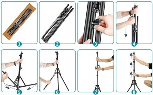 - Regulowany statyw w zakresie 70 cm - 220 cm