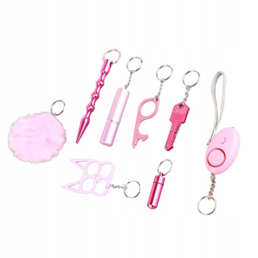 1. Ochronny zestaw breloczków: zestaw breloczków ma wiele opcji do obrony, w tym alarmie, gwizdek, breloczek z pomponem itp.