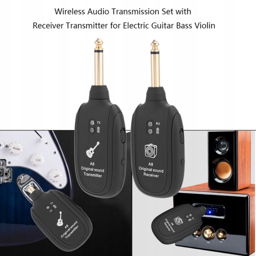 Zestaw bezprzewodowej transmisji audio z nadajnikiem-odbiornikiem do skrzypiec basowych z gitarą elektryczną