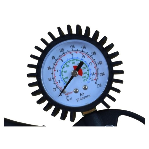 ✅ Pistolet do pompowania kół z manometrem: Długość węża 350 mm, końcówki euro 1/4", manometr z gumową osłoną, zawór spustowy powietrza, zakres do 15 bar (220 psi)