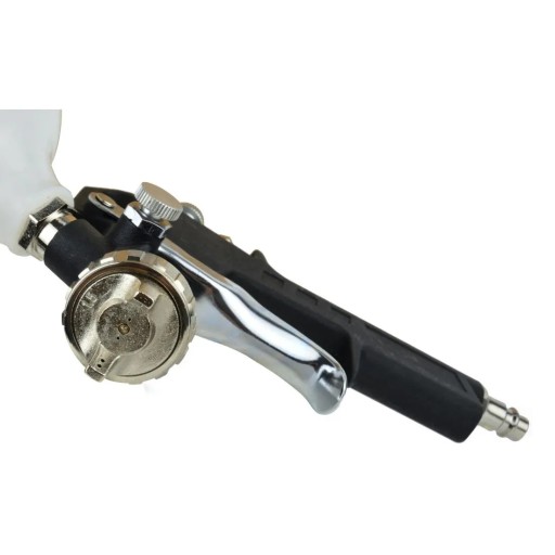 ✅ Pistolet do lakierowania z górnym zbiornikiem: Dysza 1,5 mm (mosiężna), regulacja ilości i strumienia lakieru, ciśnienie robocze 3-5 bar, zbiornik 600 ml, aluminium
