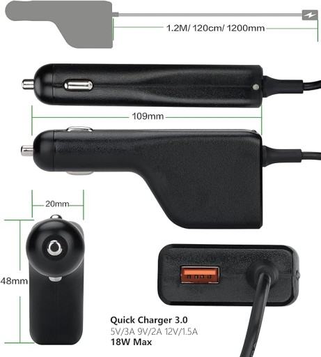 - Szybkie ładowanie USB QC3.0 - Port USB z funkcją Quick Charge 3.0 jest szybszy niż zwykłe ładowarki. Zapewnia dużą prędkość. Nadaje się do wielu urządzeń elektronicznych. Ładuj smartfon, Galaxy, tablet, power bank, nawilżacz, rejestrator jazdy podczas ładowania laptopa.
