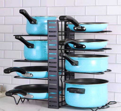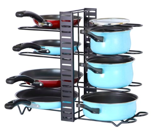 ⭐ Wielofunkcyjny organizer metalowy to idealne rozwiązanie dla każdej kuchni, które pozwala na wygodne i uporządkowane przechowywanie patelni, garnków i pokrywek.