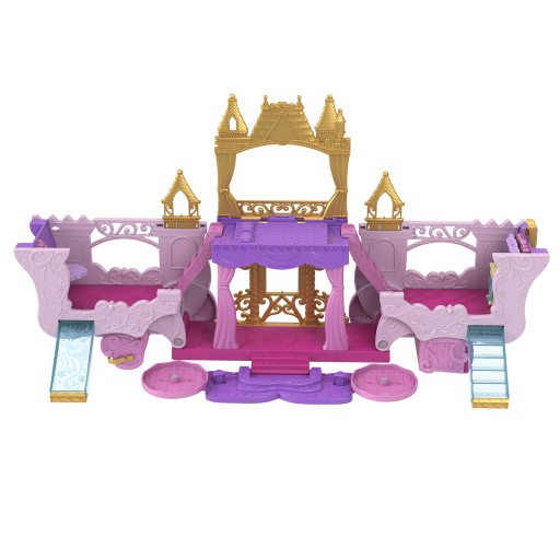 - Przygoda zaczyna się od królewskiej karocy, która toczy się na kółkach i pomieści małą lalkę Aurorę i 3 kolejne Księżniczki Disneya. (W zestawie znajduje się jedna lalka. Inne lalki są sprzedawane oddzielnie).