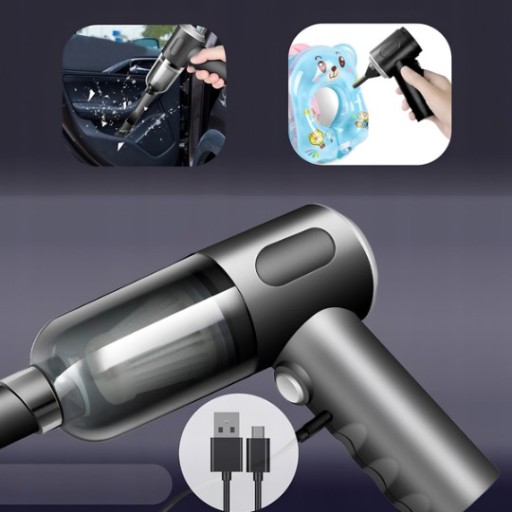 - Wydmuchiwanie: Podłącz końcówkę dmuchawy, aby usunąć kurz i zanieczyszczenia z ciasnych przestrzeni, takich jak klawiatury, urządzenia elektroniczne i otwory wentylacyjne w samochodzie.