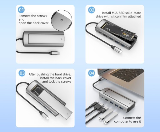 Ten nowoczesny hub posiada wbudowane miejsce na dysk SSD z wejściem m2!