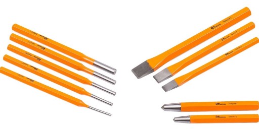 Przecinaki, przebijaki i punktaki we wkładce narzędziowej - 10 sztuk