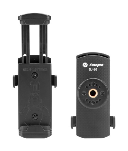 Aby zamontować smartfon na statywie, potrzebny jest specjalny adapter. Dołączony do zestawu uchwyt SJ-86 kompatybilny jest z telefonami o szerokości 56 - 86 mm.