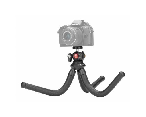 Fotopro Alien Pod RM-80 jest wykonany z gumowego, elastycznego materiału. Statyw można zamontować w różnych trudno dostępnych miejscach. W skład zestawu wchodzi również mała głowica kulowa Fotopro KII, uchwyt do smartfonów Fotopro SJ-86 oraz adapter montażowy do kamerek sportowych Fotopro GA-1.
