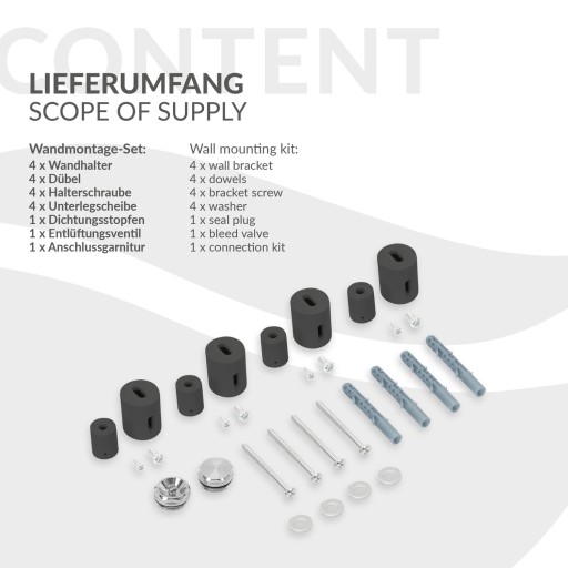 Zakres dostawy: grzejniki dekoracyjneZawór odpowietrzajacyKorki atrapaZestaw do montazu na scianieInstrukcje skladaniaTermostat pasowane polaczenie srednie +Informacje Techniczne reczników: Szerokosc: 500 mmWysokosc: 1000 mmIlosc rur: 18Moc: 467WSpecjalista towaremOryginalnie zapakowaneGwint: G1 / 2 ?Wielkosc przylacza 50 mmMaksymalne cisnienie robocze: 5 barCisnienie testu: 6,5 barKolor antracytowyOdleglosc od sciany: okolo 6.5cm Techniczne zestaw informacji polaczenia: pasowane polaczenie do rury 50 mm Odstep srodkowy zwiazkuMultiblokowy dwa zamocowanie ruryMax. Cisnienie robocze 10 barMax. temperatury pracy 110 ° Cdla przejsciaKlawisz zadawany zawór wkladka zaw. Kolor: Chromz mrozem5 poziomówsystem grzewczy dwururowegoGwint przylaczeniowy do grzejników 1/2 ?swobodnie poruszajacych nakretkePrzylacze do rur z gwintem zewnetrznym G 3/4 ?? ze stozkiem do adaptera kompresjiregulowany dla równowazenia hydraulicznegow czujnik cieczy (czujnik hydrauliczny)Zakres temperatur 0-30 ° Cze stanowiskiem i przeciw zamarzaniu ?0?Zabezpieczenie przed zamarzaniem w temperaturze 6 ° Cdo grzejników z zasilaniem a powrotem Opis produktu: Wysoka jakosc i innowacyjne produkty z pieknym wystrojem do lazni, saun, kuchniach i salonach.odpowiednie do stosowania w obrebie centralnego ogrzewaniaSprawdzone materialy przetwarzane nowoczesnych technik wytwarzaniaBarwienie oznacza przyjazne dla srodowiska proszkowego elektrostatycznegoPróba cisnieniowa dla kazdego indywidualnego grzejnika za pomoca 1,5-krotnosc cisnienia roboczegoWysoka jakosc, przystepneBezobslugowyOchrona przed zamarzaniemElegancki designJakosc TradersKolor antracytowyPolaczenie jakosci montazu na grzejniku z podlaczeniem srodkowym