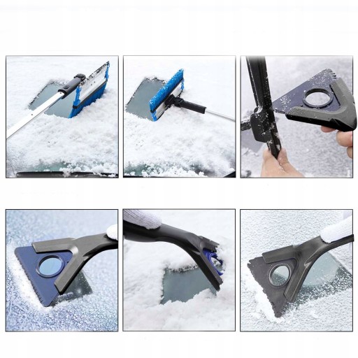 【6-IN-1】Wielofunkcyjna łopata do śniegu, która może być używana do odśnieżania/odgarniania lodu/odszraniania/ochrony wycieraczek/zgarniania śniegu/zamiatania śniegu.