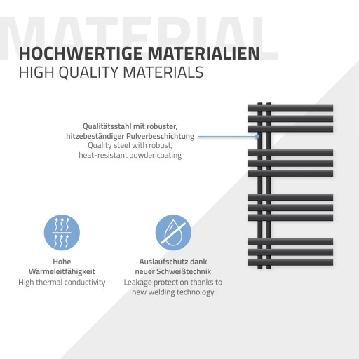 Zakres dostawy:grzejniki dekoracyjneZawór odpowietrzajacyKorki atrapaZestaw do montazu na scianieInstrukcje skladaniaOgrzewanie pret 300WInformacje Techniczne reczników:Szerokosc: 500 mmWysokosc: 1000 mmIlosc rur: 18Moc: 300WSpecjalista towaremOryginalnie zapakowaneGwint: G1 / 2 ?Wielkosc przylacza 50 mmMaksymalne cisnienie robocze: 5 barCisnienie testu: 6,5 barKolor antracytowyOdleglosc od sciany: okolo 6.5cmInformacje Techniczne grzejnik:Przy tym elektroniczny regulator temperatury do dokladnej regulacji temperatury grzejnika (regulowane w celu zapobiezenia temperature co najmniej 10 ° C do zamrazania wody w ukladzie) jest mozliwe.Zanurzeniowy grzejnik ma bezpiecznik termiczny, jest odlaczone od zasilania w przypadku przekroczenia temperatury.Dioda LED swieci, kiedy stosuje sie ogrzewanie.Urzadzenie jest latwe do zainstalowania. grzejnik 300W:Moc grzejna 300 W 230 V / 50 HzTemperatura: 10 ° C - 65 ° C + / - 2 ° CPodlaczenia linii: 1,5 m / s, 3 x 0,75Kolor antracytowyPrzylacze: 1/2 ?Gwicht: 340 (g)Dlugosc: 330 (mm)OGRZEWANIE dlugosc elementu L: 270 (mm)TYP: RD 10