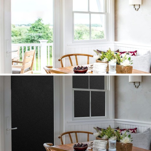 Folia okienna zaciemniająca wykonana jest z wysokiej jakości PCV, a jej matowy styl sprawia, że jest bardziej luksusowa i może natychmiast odmienić każdą przestrzeń. Te zasłony zaciemniające o minimalistycznym czarnym designie zaciemniają pomieszczenie, umożliwiając spokojny sen nawet w ciągu dnia.