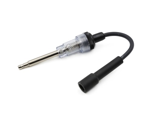 Tester do sprawdzania układu zapłonowego. Urządzenie pozwala w łatwy sposób zdiagnozować uszkodzenia cewki zapłonowej oraz sprawdzić jakość i siłę iskry w świecy zapłonowej. Tester podłączany pomiędzy kabel wysokiego napięcia, a świecę zapłonową.