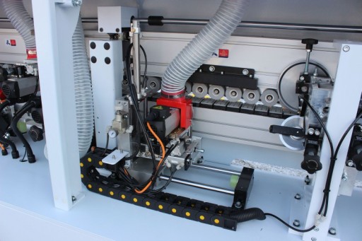 - mechanizm klejenia dostosowuje się do struktury obrabianego elementu, zapewniając równomierne nakładanie kleju i solidne sklejanie.