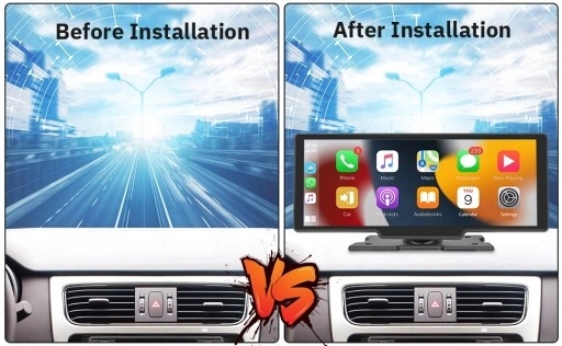 🚙 FM i Aux Dual Trase Tryb - ten przenośny ekran dotykowy CarPlay ma wbudowaną antenę nadajnika FM, jest wyposażona w linię przesyłową AUX, tryby podwójnej skrzyni biegów oferują elastyczność i wygodę.