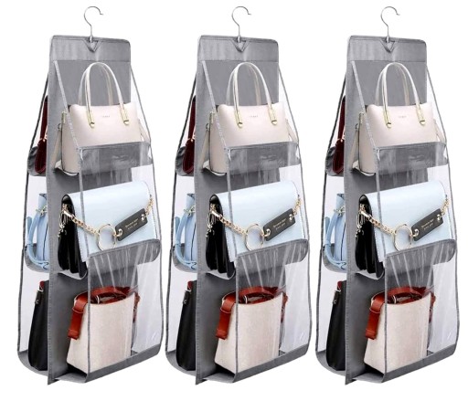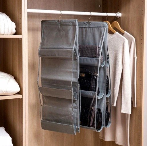 Pozwala na uporządkowanie i schowanie torebek w jednym miejscu i uniknięcie ich rozrzucenia po całej szafie