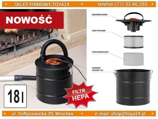 ODKURZACZ DO POPIOŁU KOMINKA 18L 800W Toya