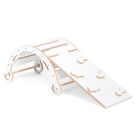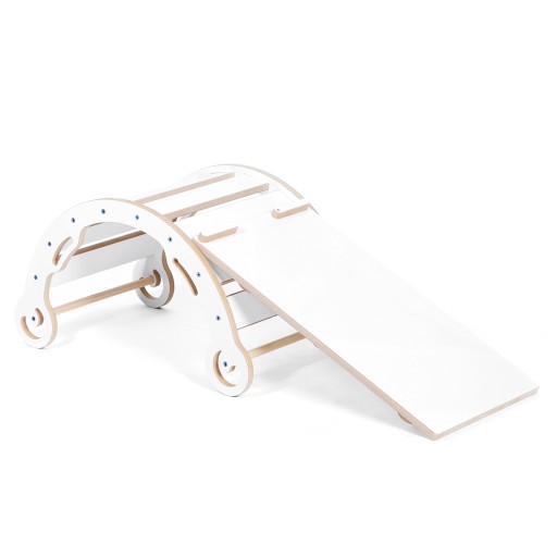 Z jednej strony ścianka do wspinania z drugiej gładka ślizgawka zapewniająca zjazd w dół. Zjeżdżalnia jest idealnym dodatkiem do bujaka, rozszerzając jego dotychczasowe zastosowania. Wykonana tak aby nie stwarzała zagrożenia dla rączek malucha.