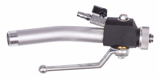 Profesjonalny wykonany z trwałego materiału pistolet natryskowy wyposażony w mosiężny zawór kulowy do natrysku tynku oraz zawór do sprężonego powietrza.