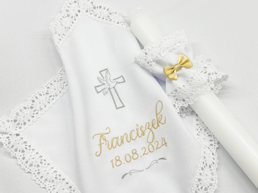 Szatka i świeca Szatka haftowana wielkość szatki 28x28 cm
