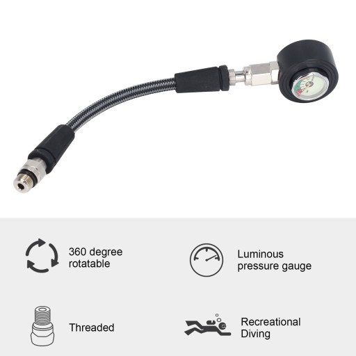 Cecha: 1. Trwały materiał: Wykonany z węża tkanego z włókna węglowego i stopu aluminium, manometr jest rygorystycznie testowany i certyfikowany, aby zapewnić nurkom doskonałą jakość i bezpieczeństwo.
