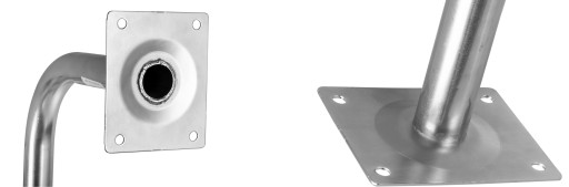 Uchwyt kątowy, łatwy w montażu, wykonany ze stali. Uchwyt cechuje wysoka jakość oraz estetyka wykonania. Dzięki zastosowaniu tej technologii uchwyty są odporne na zniszczenia i wytrzymałe na rdzę, co gwarantuje satysfakcję z zakupionego towaru. Kapturek z tworzywa sztucznego zapobiega przedostawaniu się wody do wnętrza. Polecany do montażu czasz satelitarnych oraz anten telewizji naziemnej. Dostępny również w innym rozmiarze.