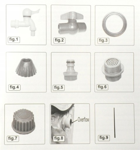 - zawór przelewowy i wąż przelewowy
