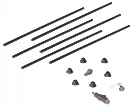 - sześć rurek z regulowanymi stópkami dla zapewnienia stabilności