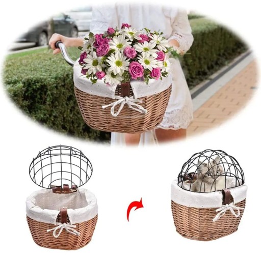 ✅ Odkrywaj nowe miejsca na rowerze ze swoim kocim i psim przyjacielem, korzystając z tego łatwego do montowania koszyka rowerowego z wikliny.