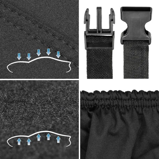 Elastyczne ściągacze z przodu i z tyłu, dzięki czemu idealne dopasowanie pokrowca do obrysu pojazdu.