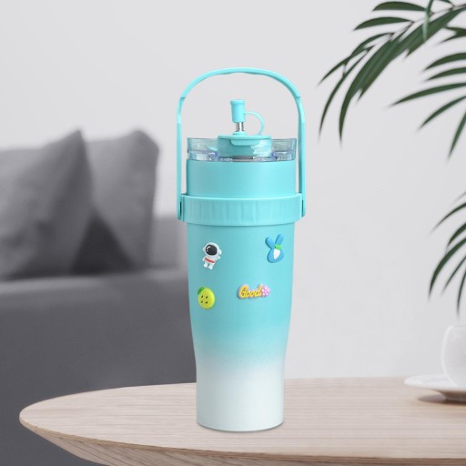 [Pojemność 1200 ml]: Ta butelka na wodę ma pokrywkę i słomkę, pojemność 1200 ml, doskonale nadaje się do herbaty, wody, mrożonej kawy, koktajli, koktajli mlecznych, mleka, soków owocowych i innych.