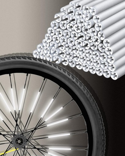 Uniwersalne rurki odblaskowe pasujące do każdych szprych rowerowych.