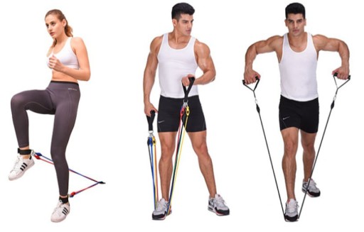 5 gum o różnym oporze: żółta 4,5kg czerwona 6,8kg niebieska 9,1kg zielona 11kg czarna 14kg